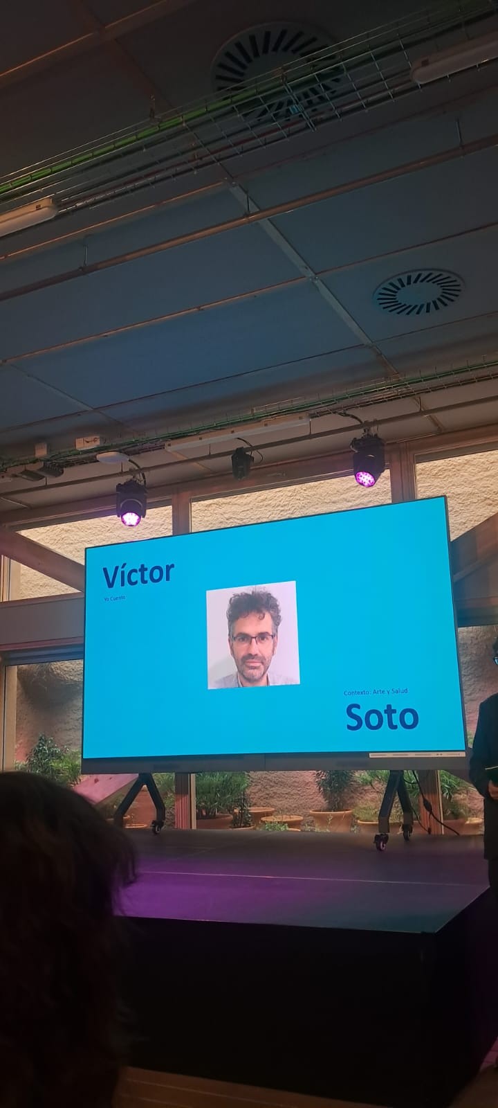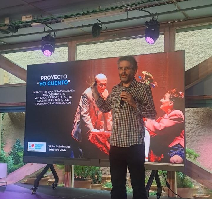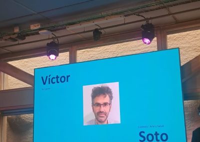Además, hemos tenido la oportunidad de contar Yo Cuento a todas las personas participantes, a modo de ejemplo de caso práctico de proyecto artístico-sanitario que demuestra que la intervención y la mediación artística funciona. Victor Soto ha cogido el micrófono y ha escenificado en tres actos la relación entre arte y salud.